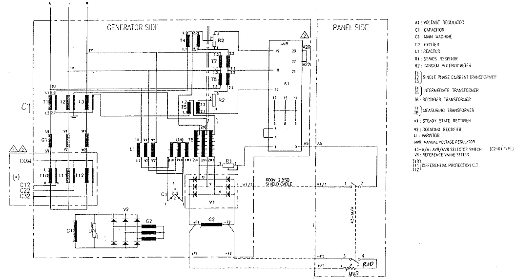 由技术资料得知,与无功调节有关的PSG机组自动电压调节器(AVR)为HYUNDAI的产品,这个控制单元安装在机组本体上